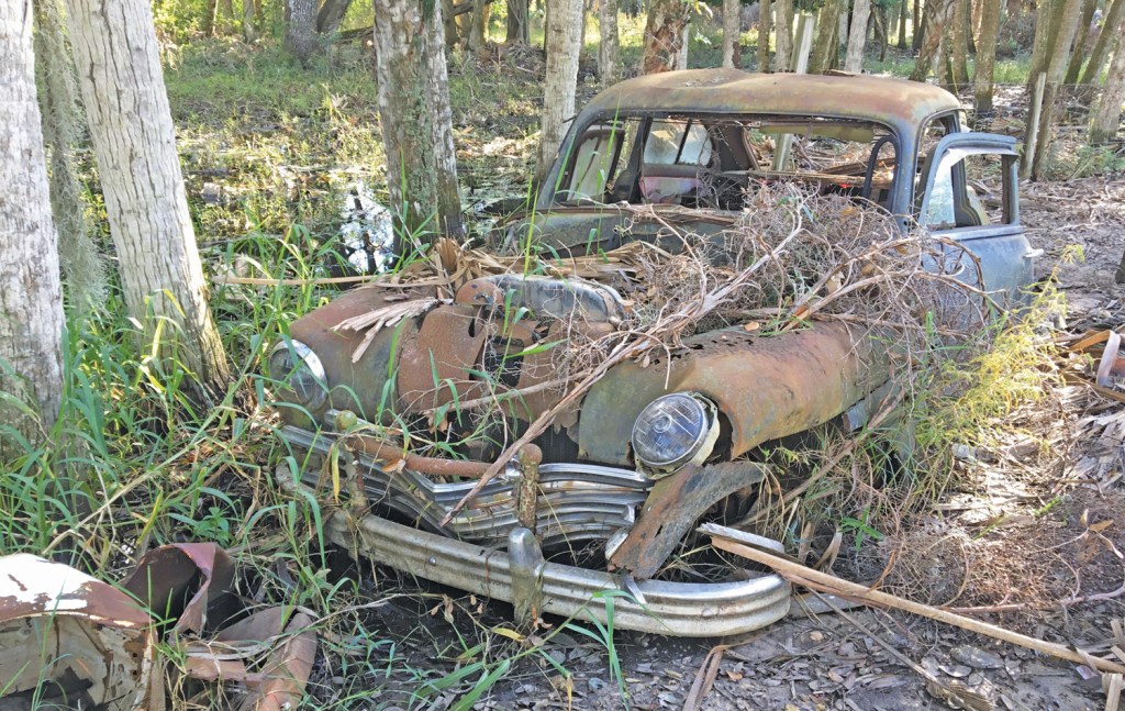 The following piece is my response to a prompt for the Florida Weekly 2025 writing contest, to write a story no more than 750 words, about the accompanying photo of an old car abandoned in the woods.